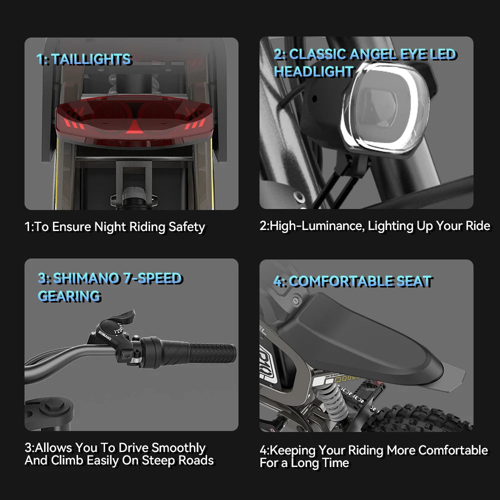 Adult Electric Bike 3000W Power Motor High-Strength Off-Road Tires